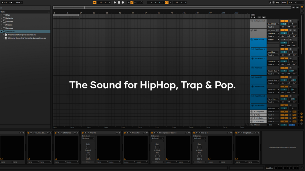 This product contains a professional vocal recording template, including Lead Vocals, Doubles, Harmonies, Adlibs & FX (Verb, Plate, Delay). Fully bus- & playlist routed with easy project overview and maximum processing options.